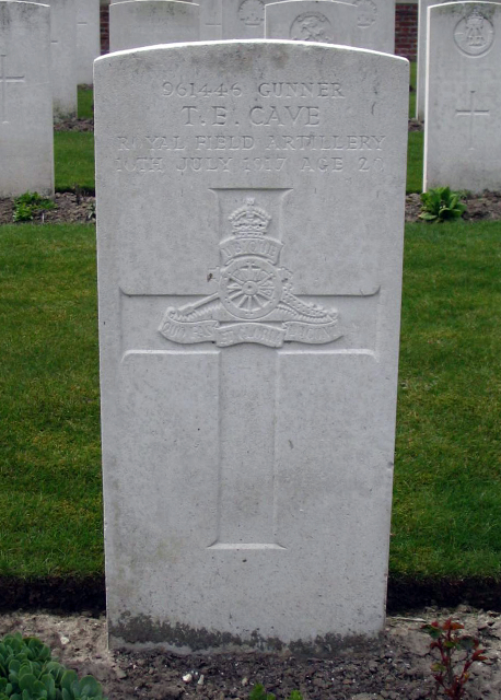 | 003 | Gunner Albert Cave 159288 of the Royal Garrison Artillery is buried in the Dozinghem Military Cemetery
